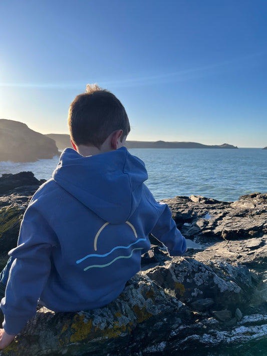 Cornflower Blue Retro Sunset Organic Cotton Raglan Hoody