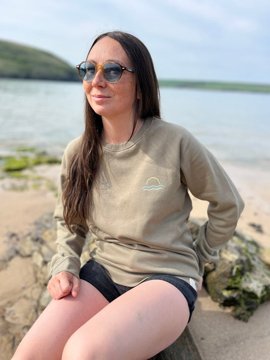 Olive Green Organic Cotton Raglan Sunset Jumper