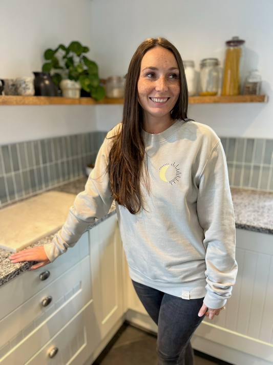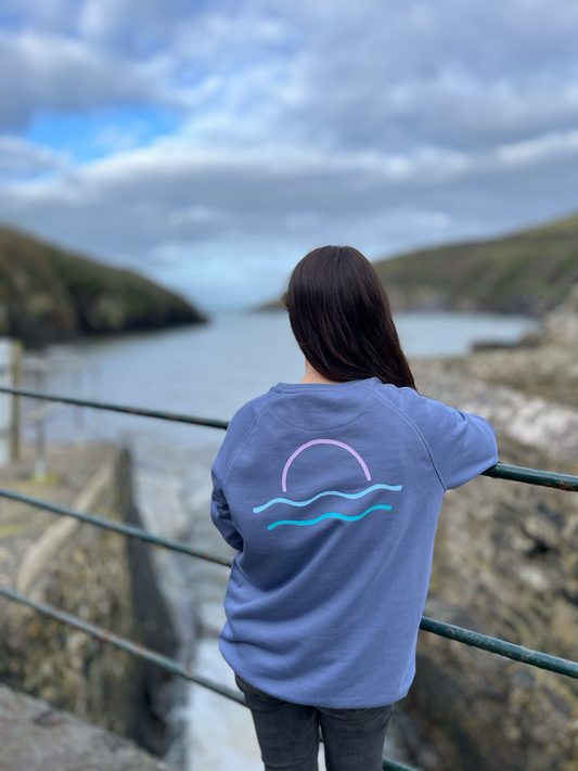Cornflower Blue Retro Sunset Organic Cotton Raglan Jumper