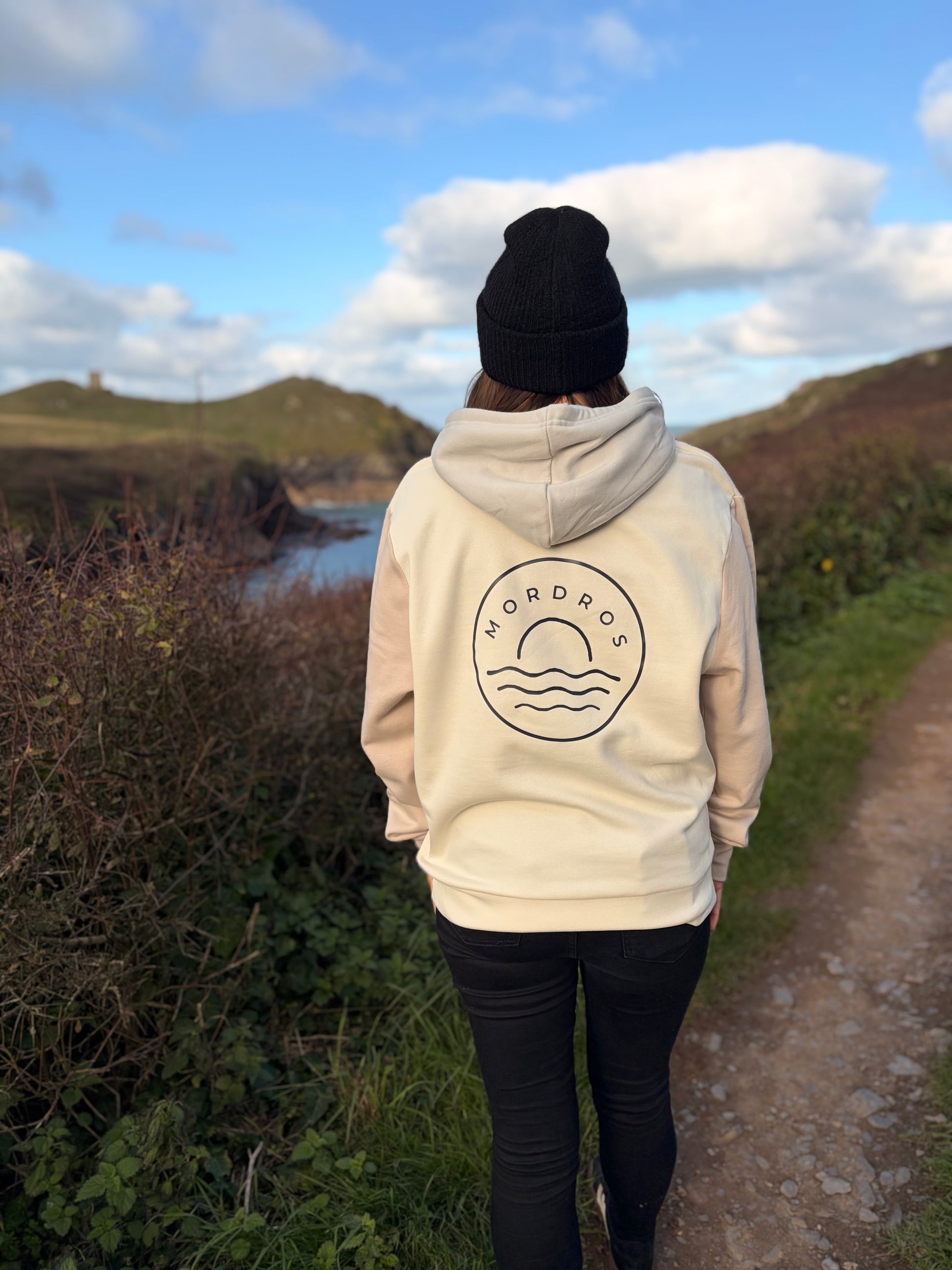 Each hoody is printed to order by us in Cornwall and has our signature "Mordros" logo sewn onto the bottom hem for that finishing touch.