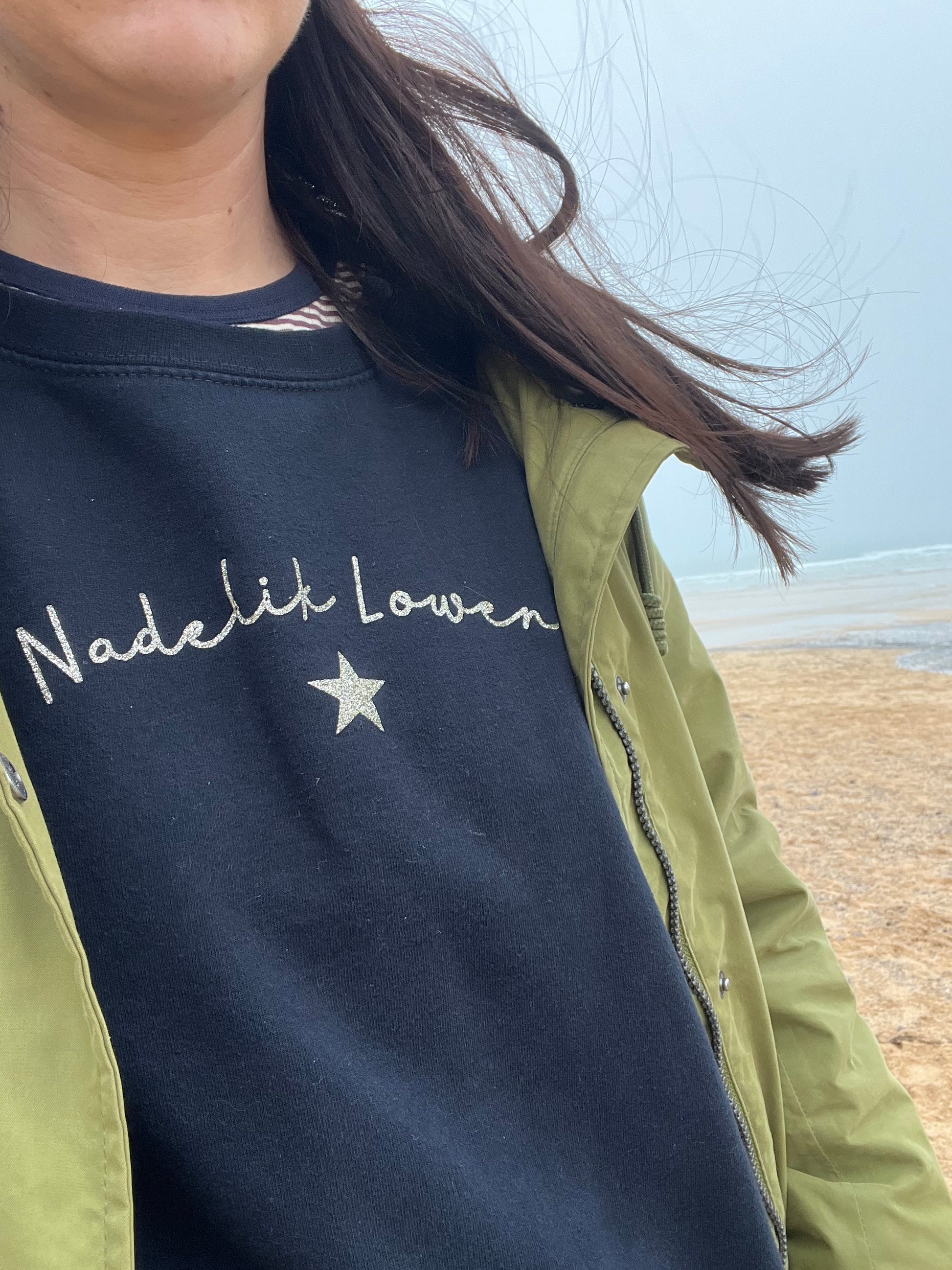 Wrap yourself in cosy Cornish cheer with this beautiful navy sweatshirt featuring “Nadelik Lowen” (Cornish for Merry Christmas) in gold glitter. Perfect for keeping warm throughout the winter season, this festive favourite is also available in our children’s range. Ideal for gifting or for adding a touch of Cornish magic to your own Christmas wardrobe.