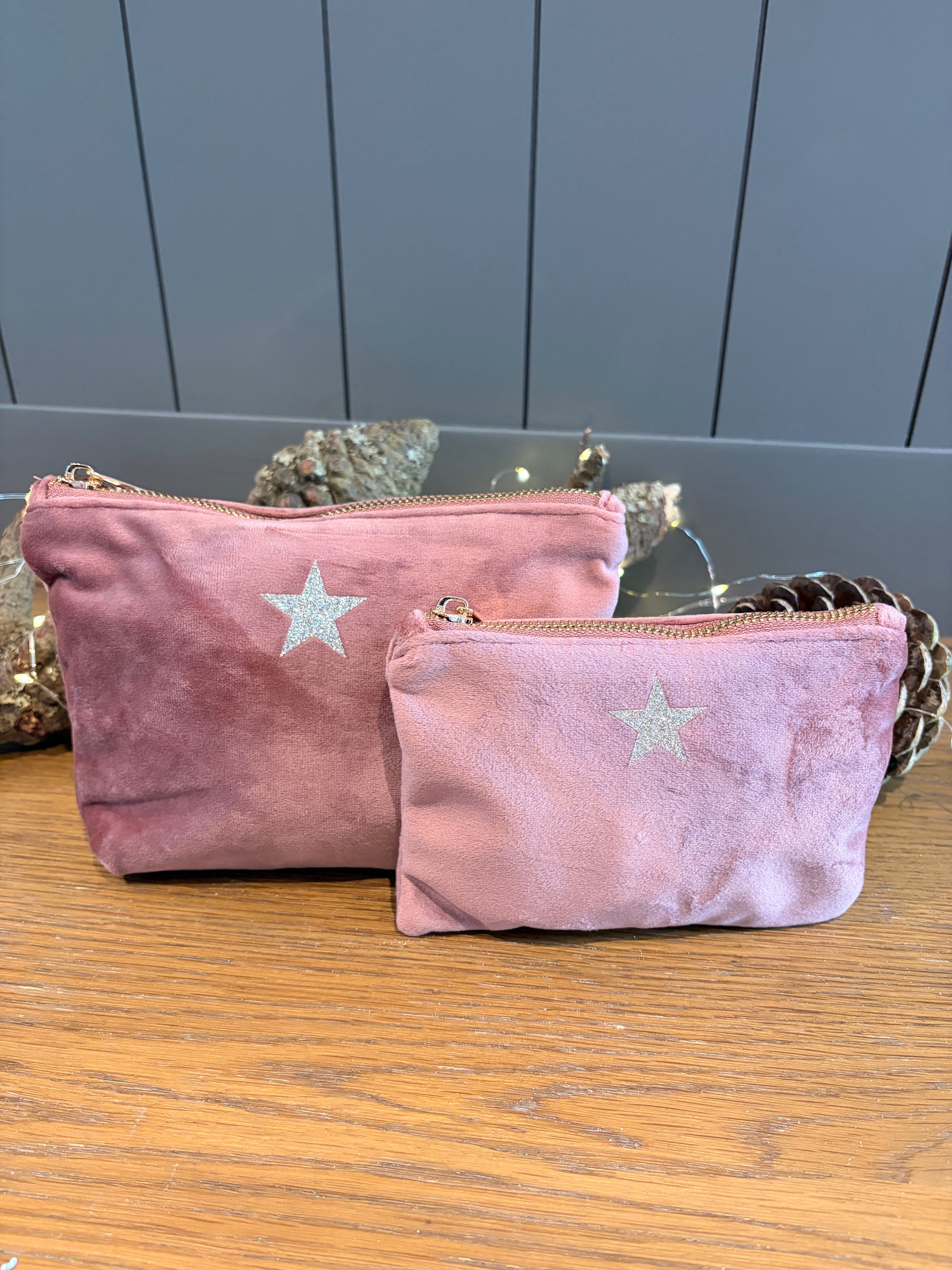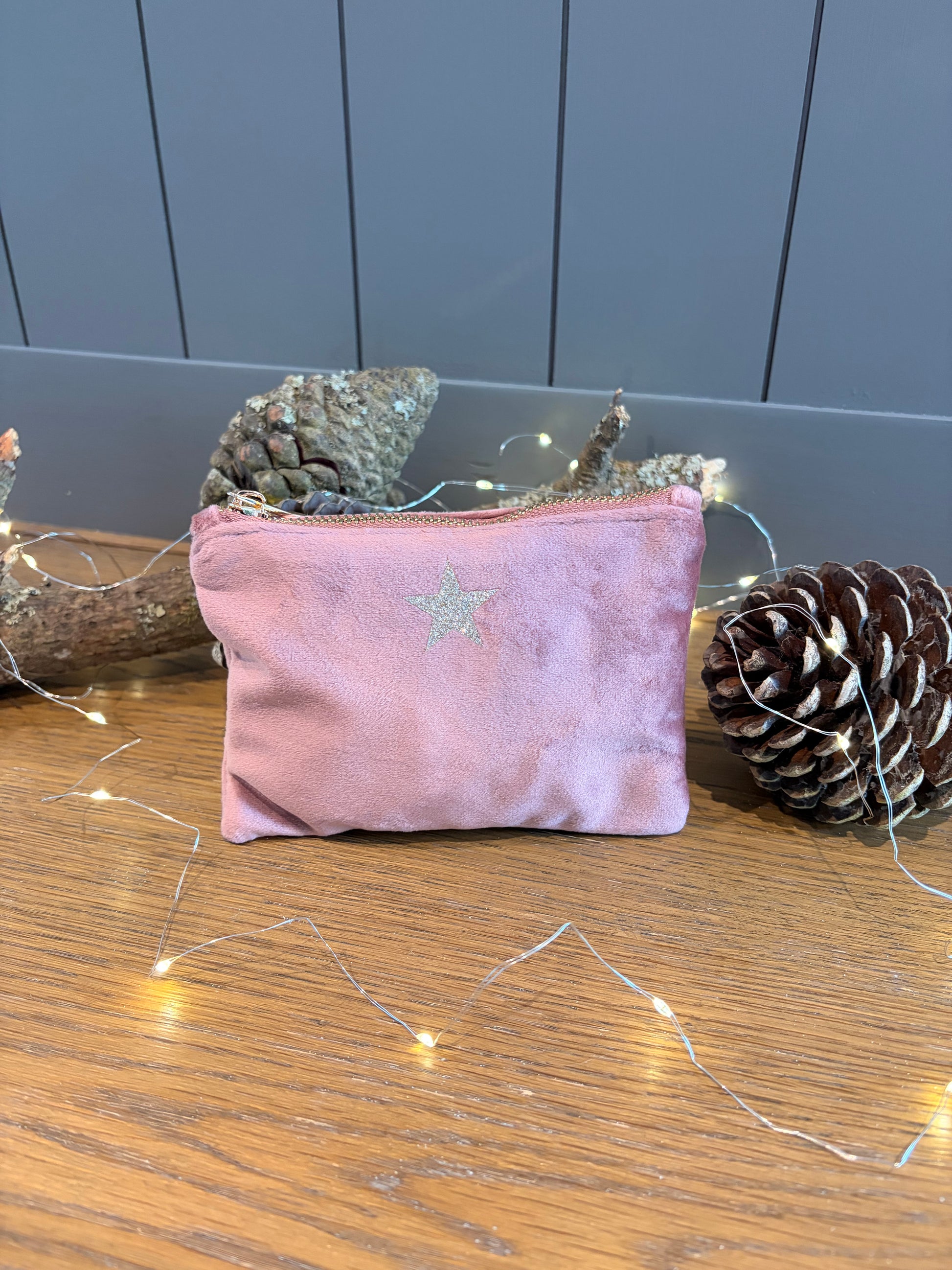 These gorgeous super soft recycled velvet purses would make the perfect gift or a treat for yourself. They come in pink, Emerald or petrol and feature a glitter star.